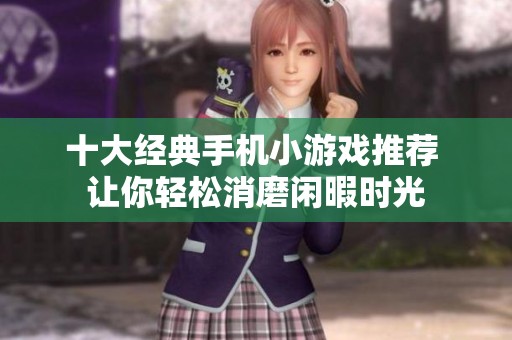 在忙碌的生活中,寻找一些轻松愉快的休闲活动是非常必要的。手机小游戏凭借其简单易上手的特点,成为了消磨闲暇时光的绝佳选择。今天,我们为大家推荐十大经典手机小游戏,让你在轻松的游戏氛围中,打发几个闲暇的小时。