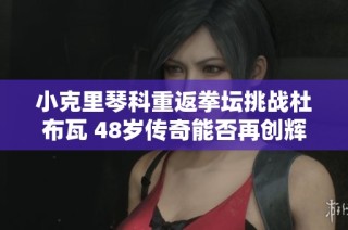 在拳击界,传奇的故事层出不穷,但很少有人像小克里琴科一样,以如此震撼的方式重返赛场。今年,48岁的小克里琴科宣布将挑战年轻拳手杜布瓦,向世人展示他未曾消逝的拳击才华。这位曾经的世界冠军,在经历了数年的退役生活后,选择再次站上...